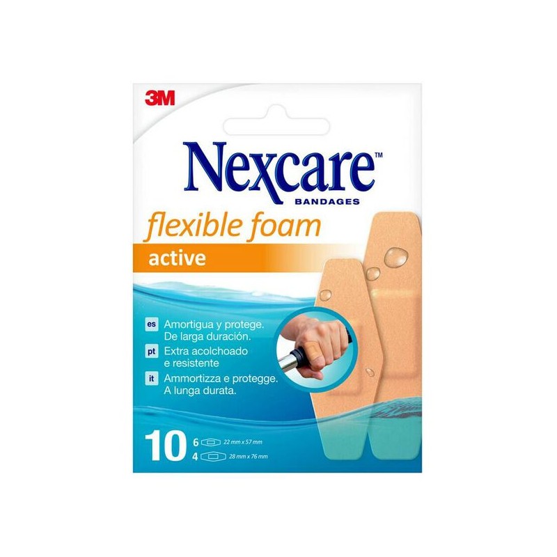 Nexcare Active 360º ofrece apósitos ultraresistentes y transpirables que se adaptan al movimiento del cuerpo. Con 10 unidades surtidas, son perfectos para deportistas y personas activas que buscan protección duradera y flexible.