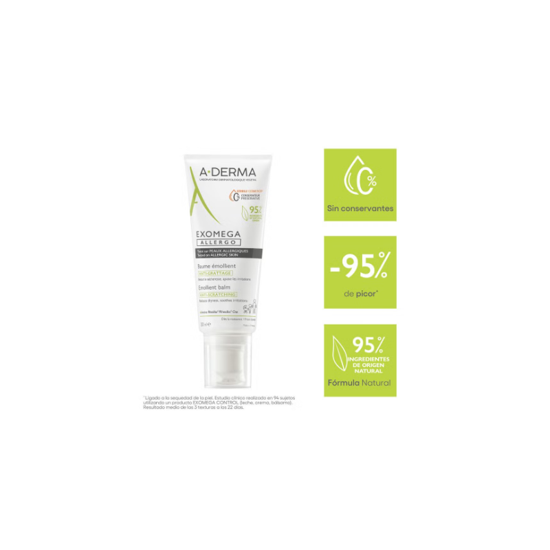 A-DERMA EXOMEGA ALLERGO BÁLSAMO EMOLIENTE ANTI-RASCADO 40 ML - Bálsamo hidratante y calmante para piel seca y atópica con propiedades anti-rascado