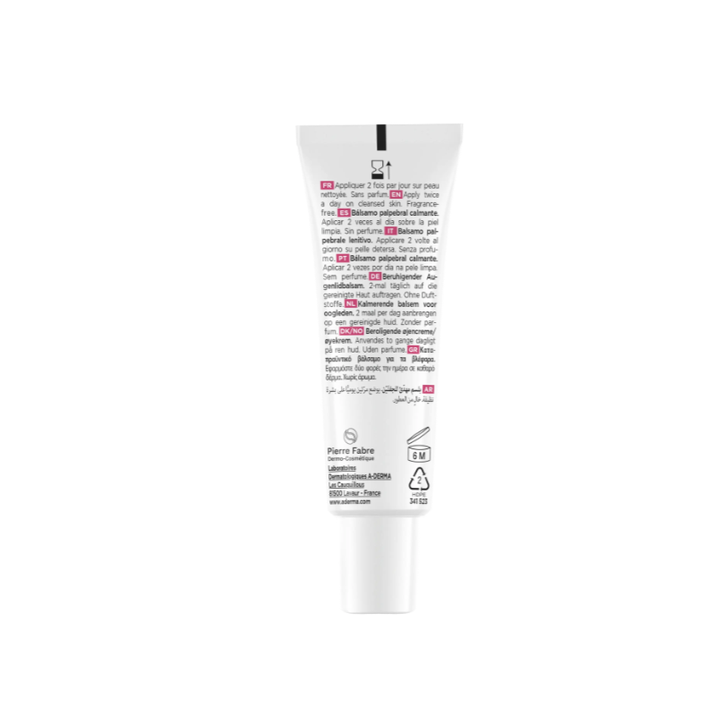 Bálsamo palpebral de alta tolerancia que calma al instante el picor, reduce las rojeces y protege la zona del contorno de ojos frente a irritaciones y rascado.
