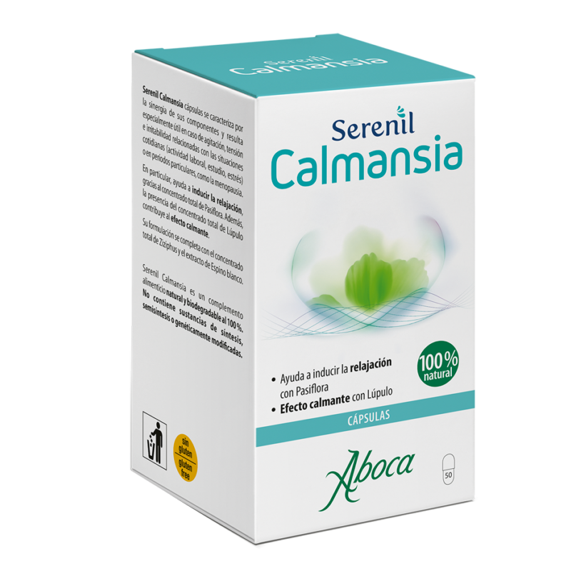 Más informaciónAboca Serenil CalmAnsia 50 cápsulas es un complemento alimenticio elaborado con ingredientes de origen natural, como extractos de plantas (pasiflora, espino blanco, tila y melisa), cuidadosamente seleccionados por sus propiedades calmantes y relajantes.