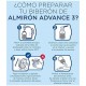 Añadir al biberón el número correspondiente de medidas rasas y sin comprimir, siguiendo la tabla de dosificación.