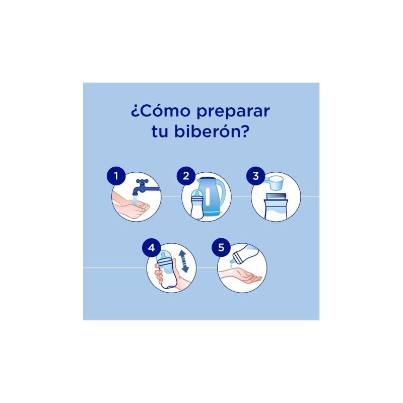 Añadir al biberón el número correspondiente de medidas rasas y sin comprimir.
