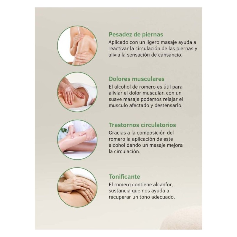 El Alcohol de Romero es un preparado natural de uso tópico, ideal para masajes, aliviar la sensación de cansancio muscular y activar la circulación. ✔️