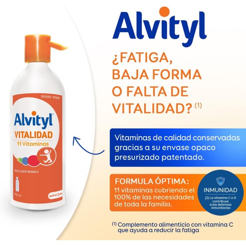Alvityl Jarabe 150 ml es un suplemento alimenticio en formato líquido que combina 12 vitaminas esenciales para apoyar el correcto crecimiento, desarrollo y vitalidad en todas las edades.