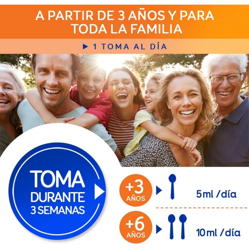 Gracias a su agradable sabor afrutado, es fácil de tomar tanto para niños como para adultos, convirtiéndose en un aliado práctico para toda la familia.