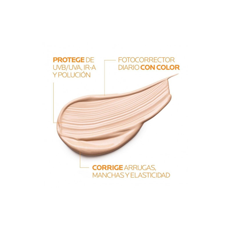Más informaciónAnthelios Age Correct CC Cream Color SPF50 es una crema correctora con color y protección solar SPF50+ diseñada para corregir los signos del envejecimiento cutáneo y unificar el tono de la piel. Su fórmula enriquecida con ácido hialurónico y péptidos ayuda a reducir las arrugas y mejorar la firmeza y elasticidad de la piel, mientras que sus pigmentos de color proporcionan una cobertura natural y unificada.