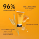 La queratina vegetal, procedente de proteínas de guisante y arroz, repara las microfisuras del tallo capilar, aporta fuerza y reduce la rotura. La miel orgánica, rica en vitaminas y minerales, hidrata y nutre profundamente, mientras que los aceites esenciales de lavanda y geranio aportan protección antioxidante y un aroma relajante.