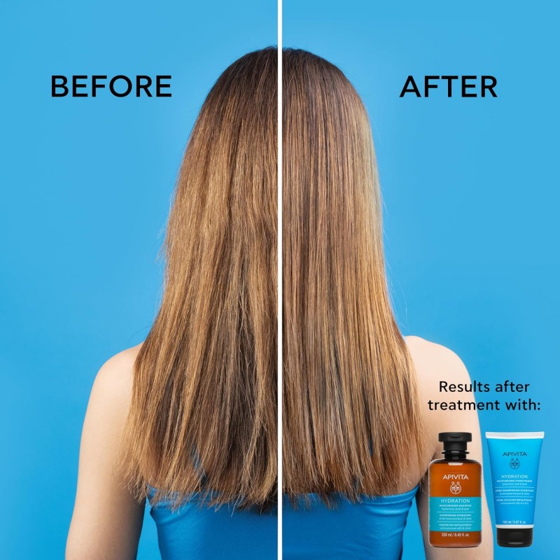 Para mejores resultados, combinar con el acondicionador o mascarilla hidratante Apivita de la misma línea.