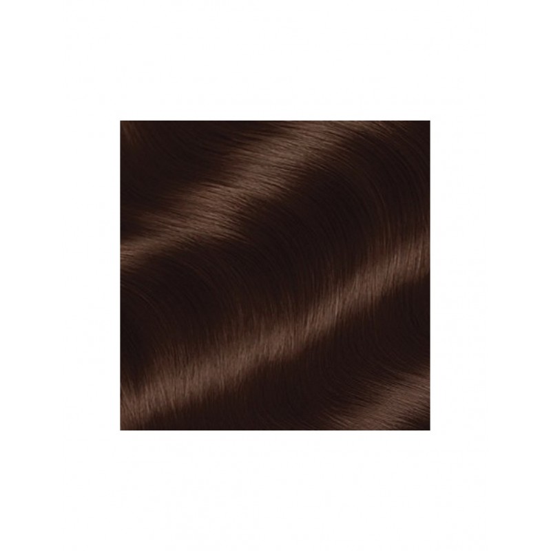 Coloración permanente con ingredientes naturales que ofrece un tono rubio oscuro dorado chocolate luminoso, cubriendo al 100% las canas y cuidando el cabello.