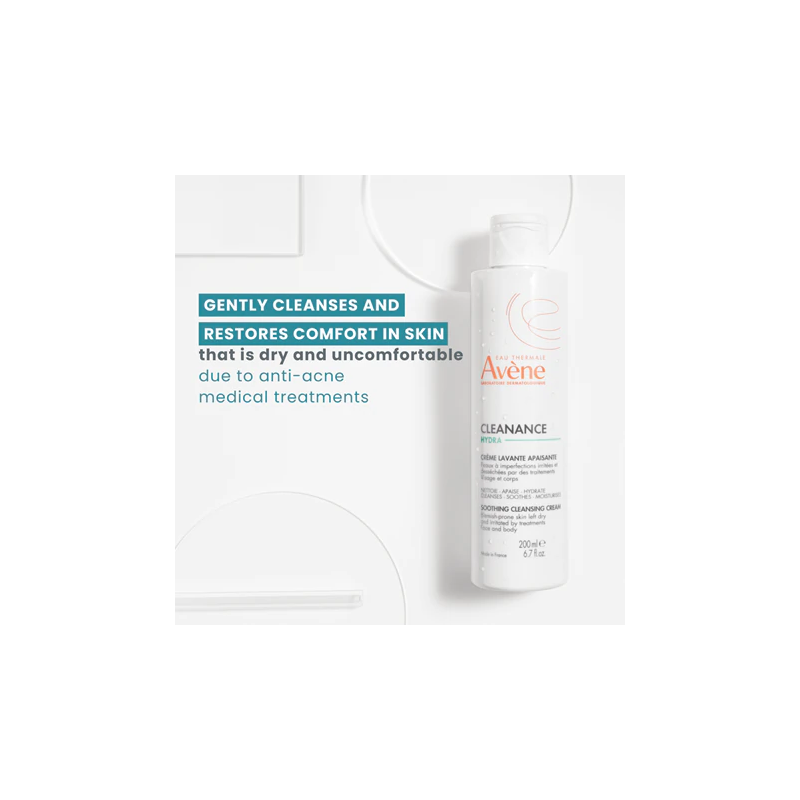 Crema limpiadora facial calmante que limpia y a su vez devuelve el confort a las pieles resecas e irritadas por tratamientos para el acné.