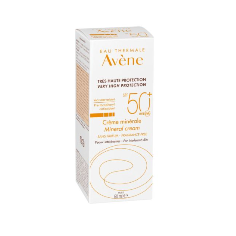 Más informaciónAvène Mineral Crema Pantalla Física SPF 50+ proporciona una protección solar muy alta mediante filtros minerales que actúan como una pantalla física, reflejando los rayos solares. Está especialmente indicada para pieles sensibles, reactivas o con intolerancia a los filtros químicos y perfumes.