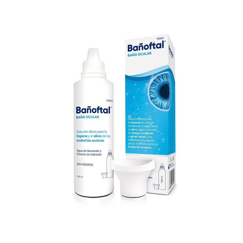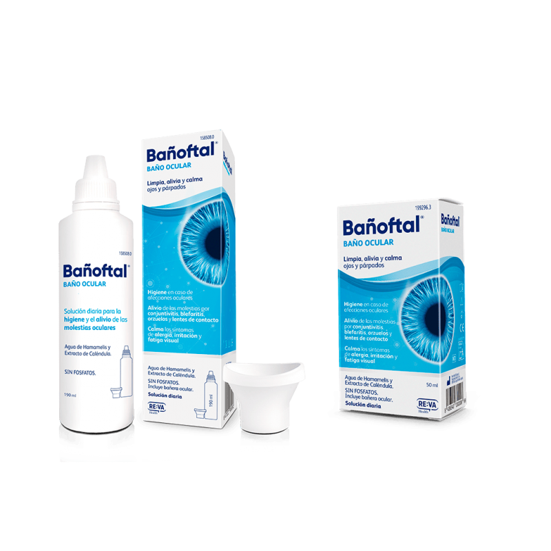 Bañoftal solución de baño ocular es una solución líquida de uso diario, a base de ingredientes de origen natural, para la higiene en profundidad de los ojos, aportando además alivio de los síntomas como picor, lagrimeo, enrojecimiento y molestias oculares.