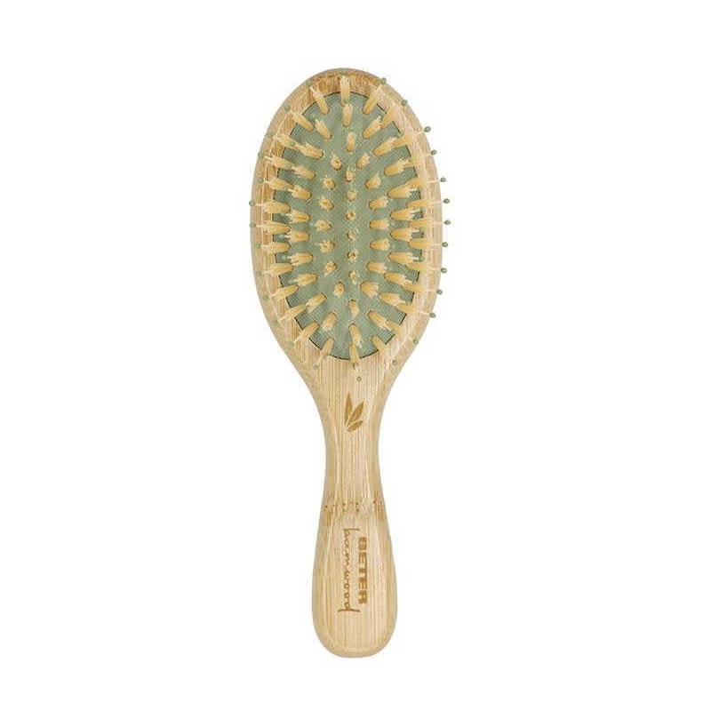 El cepillo pequeño de la línea Beter Bamwood con cerdas de nylon y bolitas protectoras está diseñado para desenredar el cabello de forma eficaz y sin tirones. Sus cerdas flexibles con puntas redondeadas masajean suavemente el cuero cabelludo, ayudando a estimular la microcirculación y aportando una sensación de confort durante el peinado. Su tamaño compacto lo convierte en un accesorio práctico y versátil, perfecto para llevar en el bolso o de viaje. El mango de bambú, resistente y de origen sostenible, garantiza durabilidad y un uso cómodo, además de ser una opción respetuosa con el medio ambiente.