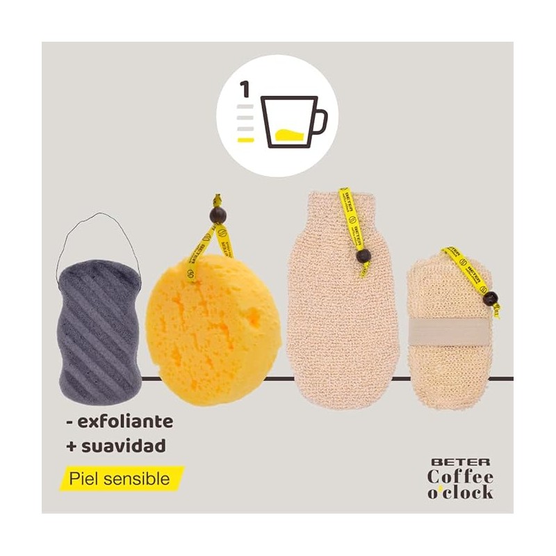 Más informaciónEl guante de baño exfoliante de cáñamo Beter Coffee O’Clock es el aliado perfecto para tu rutina de cuidado corporal. Su textura natural de fibras de cáñamo permite una exfoliación eficaz pero respetuosa, eliminando las impurezas y favoreciendo la regeneración de la piel. Gracias a su diseño práctico, se adapta cómodamente a la mano para un uso fácil durante la ducha o el baño. Además, ayuda a mejorar la absorción de cremas y lociones aplicadas posteriormente, potenciando sus beneficios. Ideal para quienes buscan una piel más lisa, suave y tonificada.