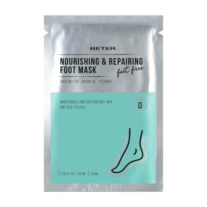 Los Beter Feet Free Calcetines Mascarilla Hidratante 40 ml (1 par) son un tratamiento intensivo diseñado para hidratar, suavizar y reparar la piel seca o áspera de los pies. Su interior está impregnado con una rica combinación de aceites y extractos botánicos, como aceite de argán, manteca de karité, urea y aloe vera, que actúan en sinergia para devolver a los pies su elasticidad y suavidad natural.