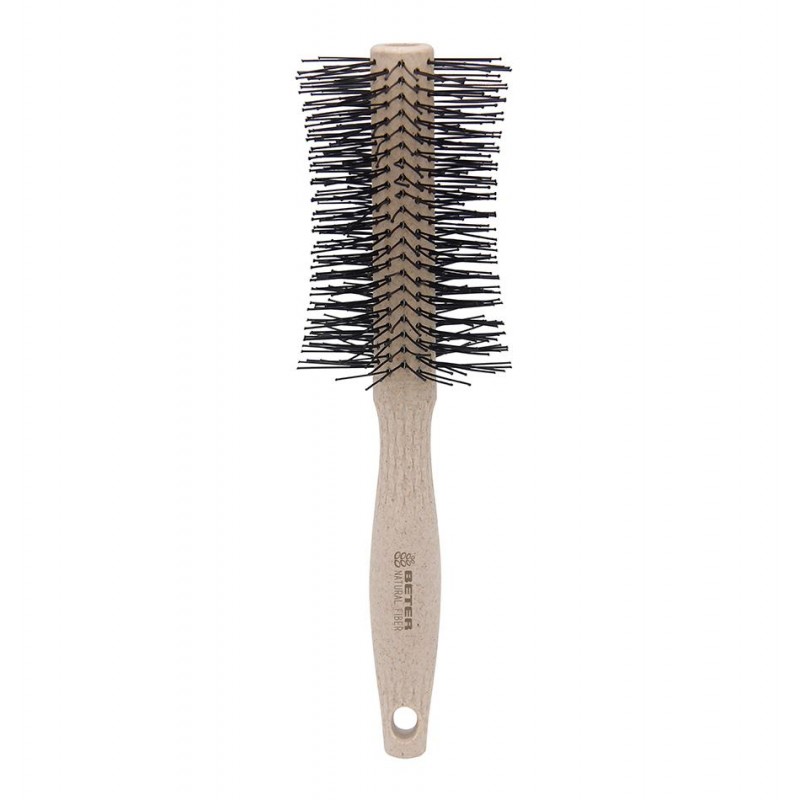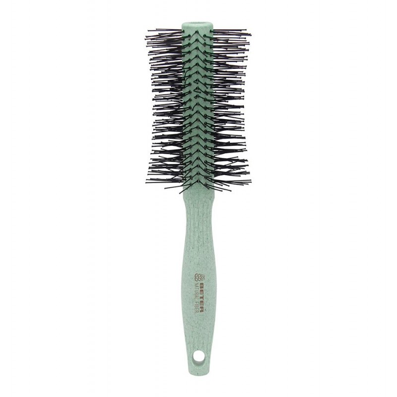 El cepillo redondo Natural Fiber de Beter combina un diseño funcional con un compromiso con el cuidado del medioambiente. Fabricado con materiales sostenibles y biodegradables, es ideal para quienes buscan un estilo más responsable sin renunciar a la calidad. Sus cerdas de nylon distribuyen el calor de manera uniforme, facilitando el peinado con secador, aportando volumen y moldeando el cabello con suavidad. Su formato redondo permite trabajar ondas, rizos o alisar con un acabado profesional. Es ligero, resistente y cómodo de usar gracias a su mango ergonómico que asegura un control óptimo durante el peinado.