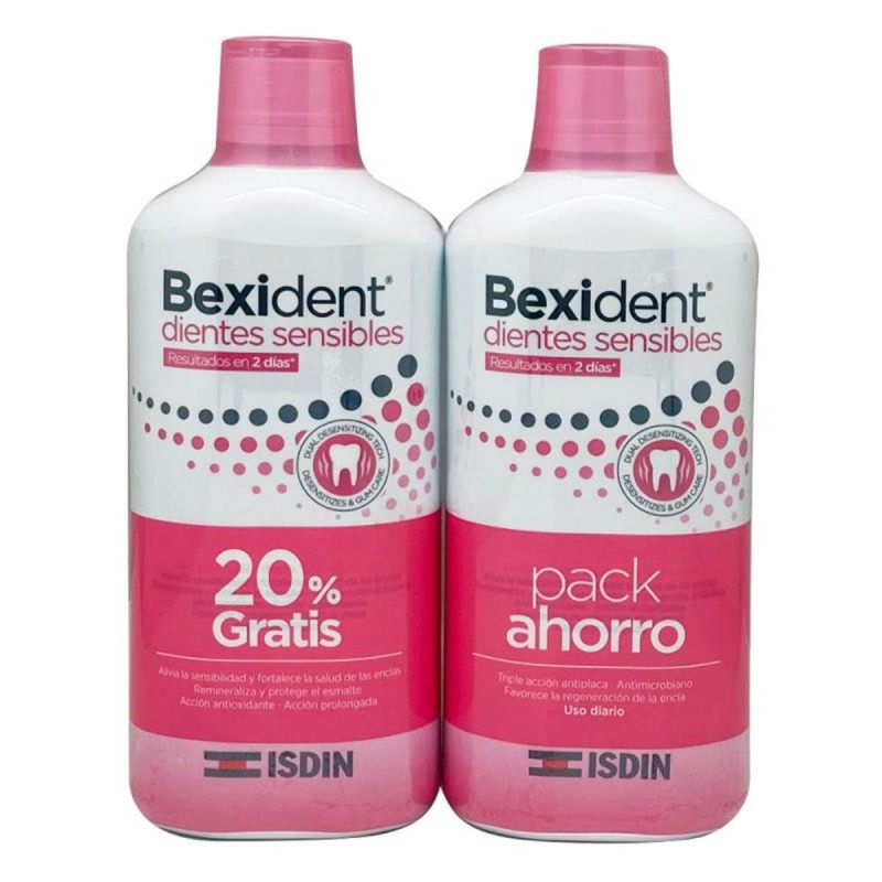 Bexident Dientes Sensibles Colutorio 500 ml alivia eficazmente la sensibilidad dental, refuerza el esmalte y protege las encías, todo en una fórmula suave sin alcohol para uso diario.