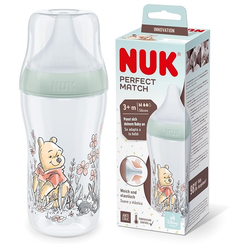 El Biberón PP Silicona NUK Perfect Match Flujo M de 260 ml, con diseño de Winnie, es una excelente opción para padres que buscan un biberón seguro y eficaz para la alimentación de sus bebés, proporcionando comodidad y reduciendo los cólicos durante cada toma.