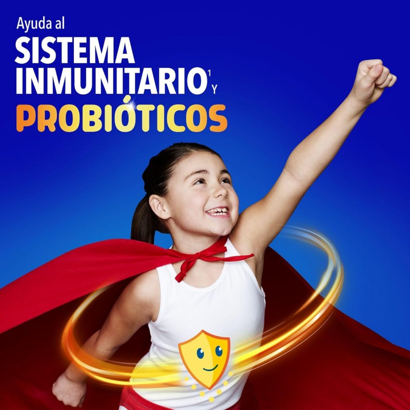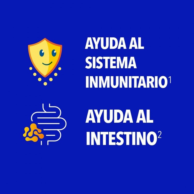 Su fórmula ha sido desarrollada para ayudar a mantener el equilibrio de la flora intestinal, clave para una respuesta inmunitaria eficaz, al mismo tiempo que apoya el crecimiento y la vitalidad infantil.