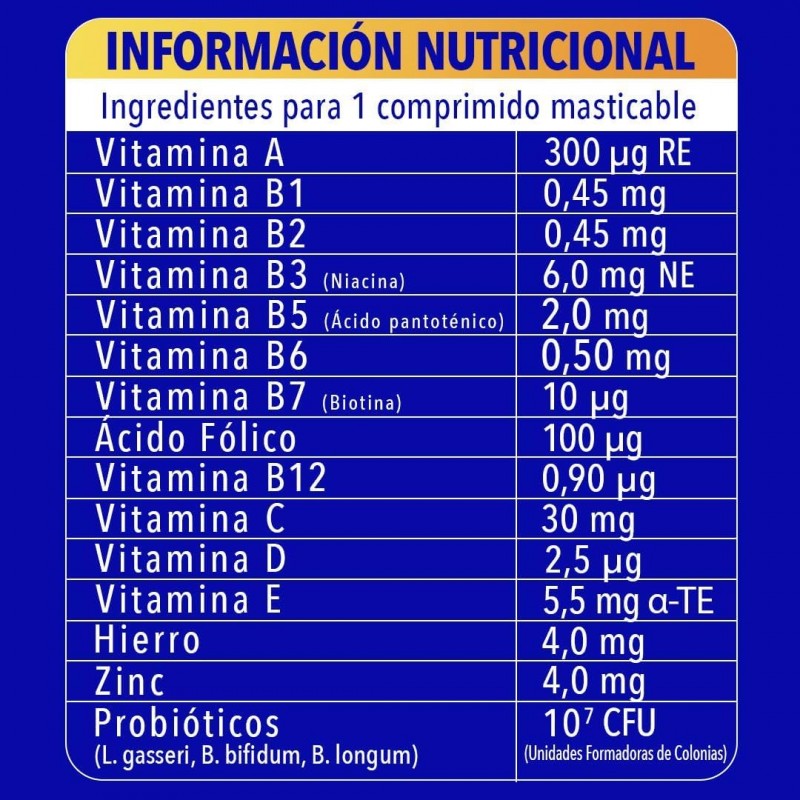 Estos comprimidos masticables de agradable sabor a frambuesa se adaptan perfectamente a las necesidades diarias de los más pequeños, especialmente en épocas de mayor exposición a infecciones, cambios de estación, inicio escolar o en momentos de cansancio o debilidad.