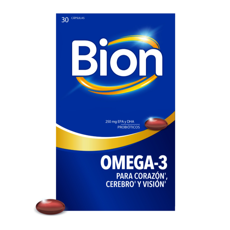 Bion3 Omega-3 es un complemento alimenticio en formato cápsulas que el omega-3, EPA y DHA + Probióticos, pensado para acompañar un estilo de vida activo y equilibrado reforzando el intestino, corazón, cerebro y la visión en una única cápsula.