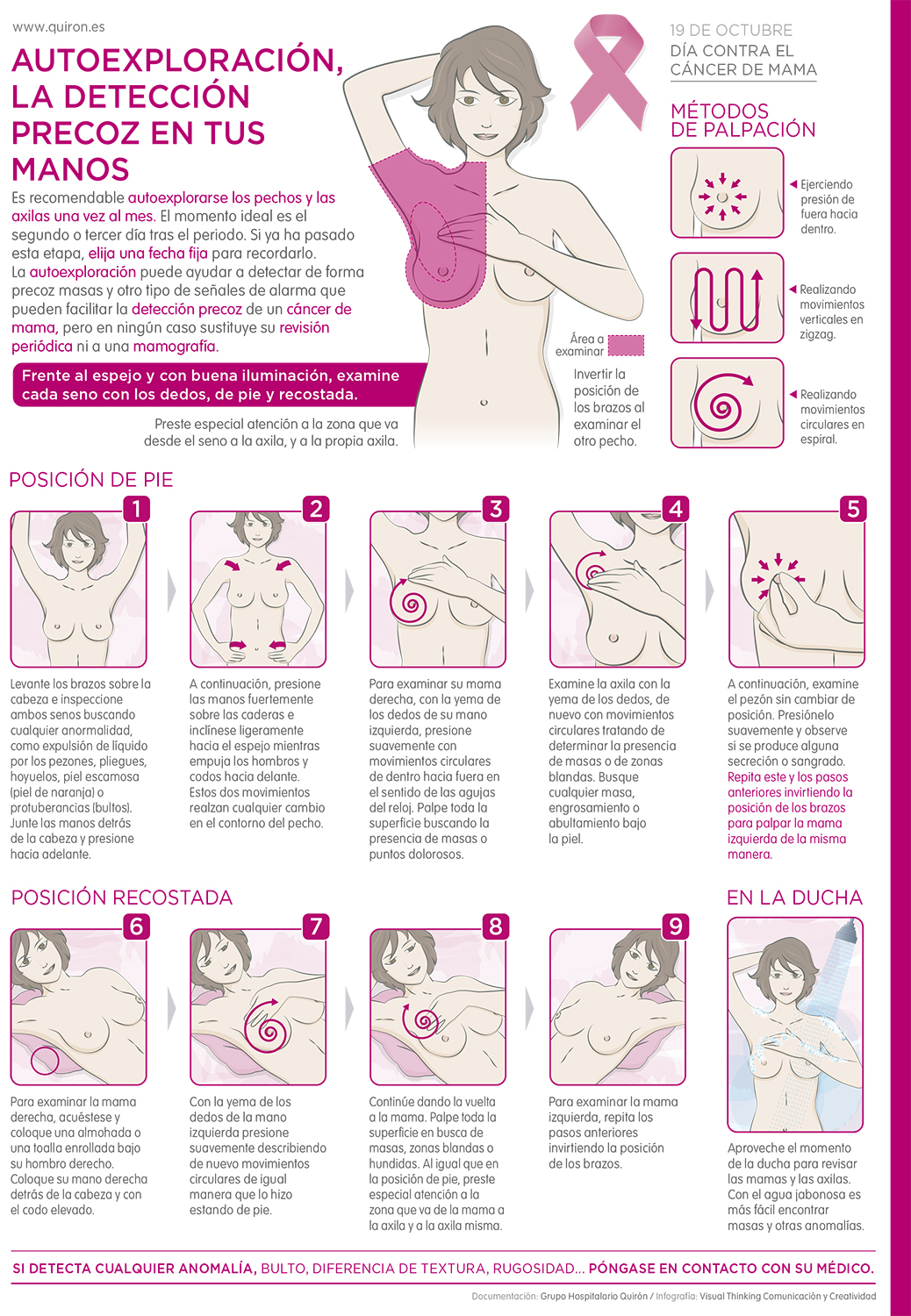 Además, en esta ocasión os dejamos algunos consejos sobre cómo autoexplorarse los pechos y las axilas, como medio esencial para detectar cualquier alarma.