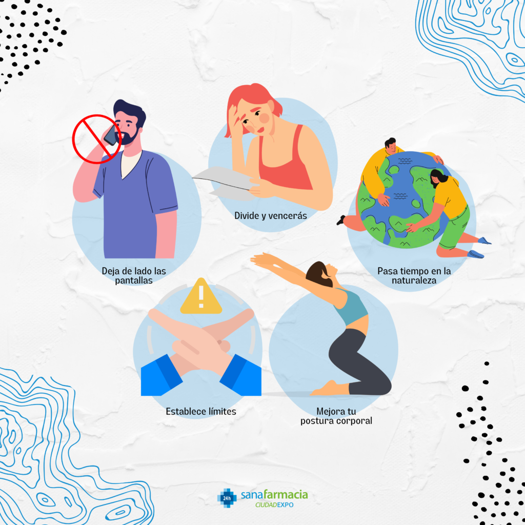 Intentar ponernos limites en aquellas tareas que quizá no requieran de tanta urgencia, por ello, es esencial intentar identificar qué compromisos son prioritarios y reducir todo aquello que no requiera inmediatez. Si ya estás en tu límite aprende a dejar de aceptar más peticiones. La clave para saber cómo controlar el estrés es precisamente conocer cuáles son nuestros límites y respetarlos.