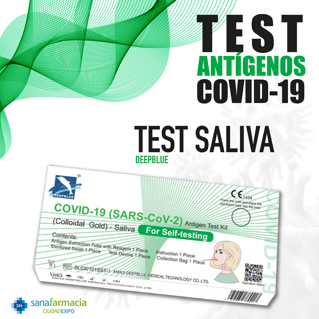 Os presentamos los nuevos Test de Antígenos Covid-19 Deepblue de Saliva, con una particularidad: para obtener la muestra de saliva, no es necesario generar un esputo, únicamente se necesita introducir la prueba en la boca, para que su extremo adsorbente se llene de saliva.