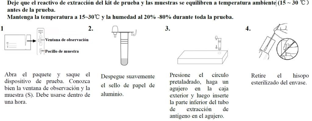Para realizar la prueba correctamente es importante mantener la higiene de las manos y de los componentes del kit. A continuación, seguir las instrucciones de uso del test: