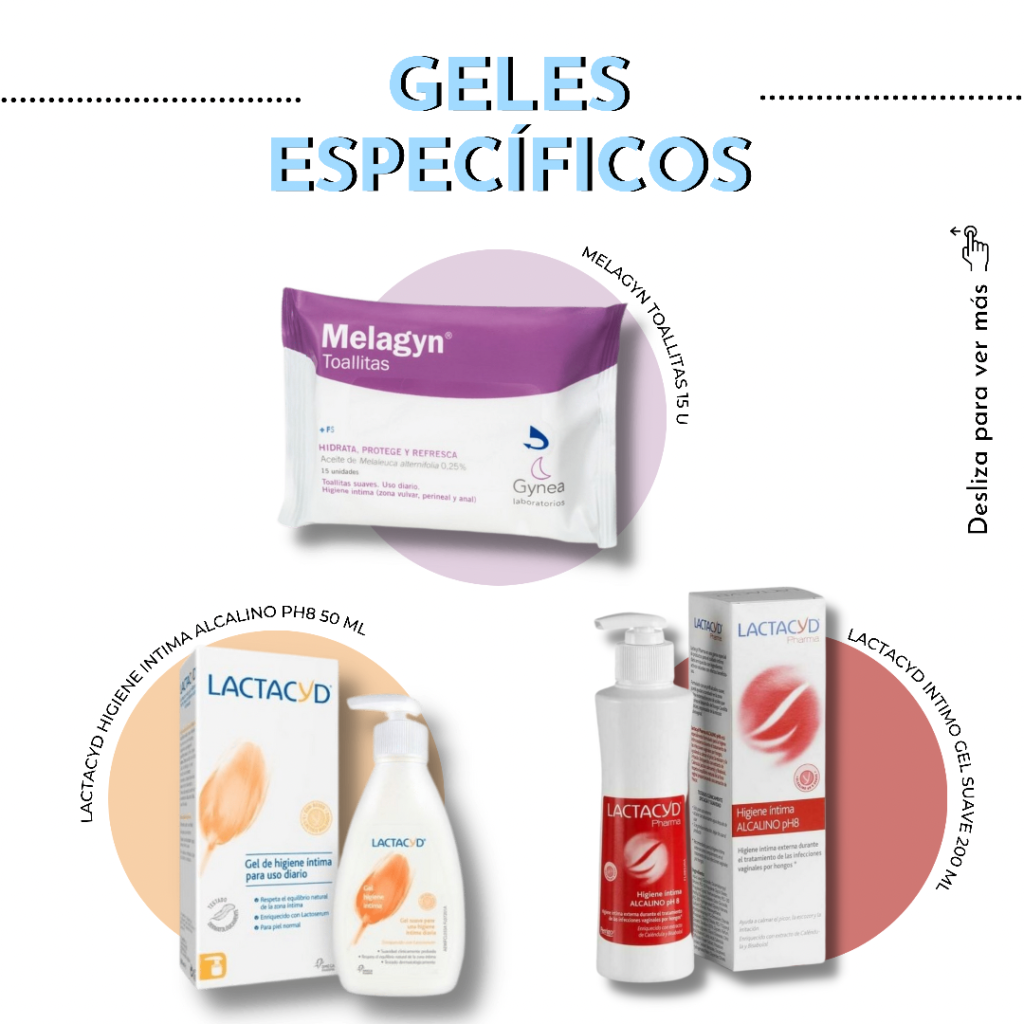 - Cuando manifestamos síntomas de infección vaginal y estamos tratándola: LACTACYD HIGIENE INTIMA ALCALINO PH8 50 ML.