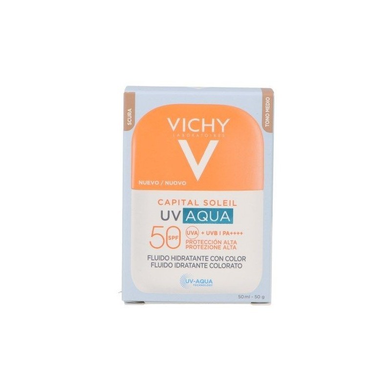 Fluido hidratante con color 24H. Unifica el tono de la piel. Resistente al agua.