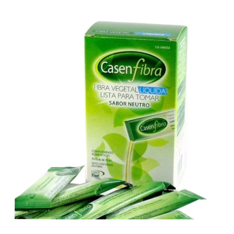 Casenfibra Fibra Vegetal Líquida 14 sobres de 10 ml es un complemento alimenticio con fibra vegetal 100% soluble que ayuda a regular el tránsito intestinal de forma suave y natural, ideal para personas con dietas pobres en fibra.