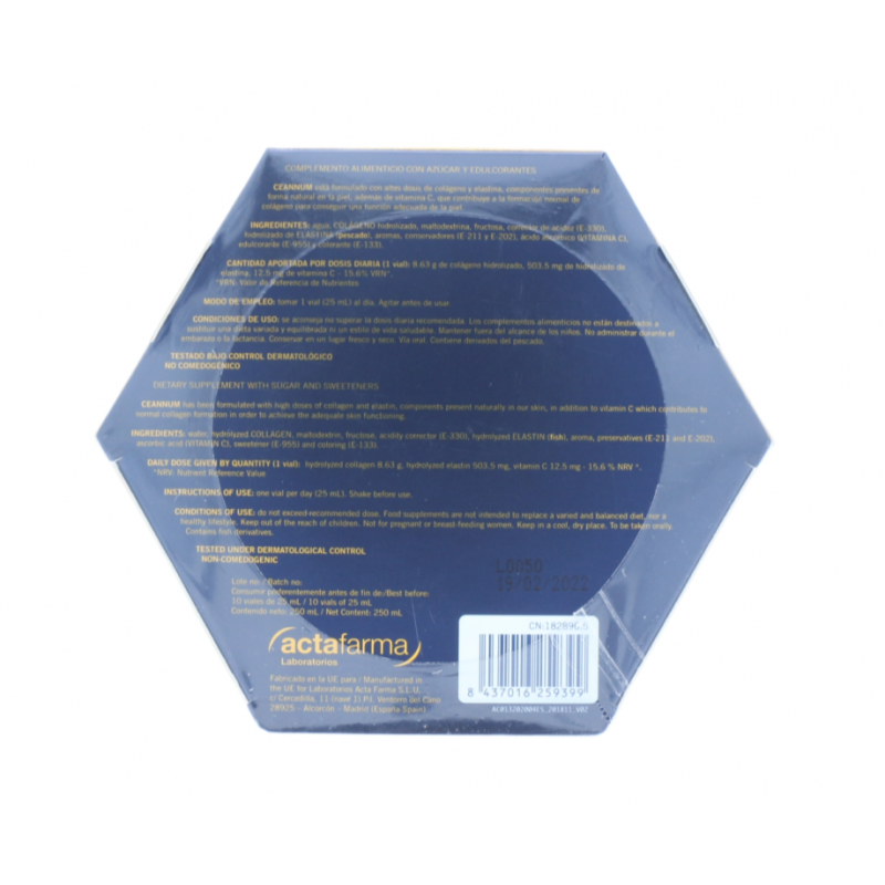 En su fórmula contiene un concentrado de biopéptidos de colágeno hidrolizado puro y elastina, componentes presentes de forma natural en la piel. Además, contiene vitamina C, para proteger las células frente el daño oxidativo.