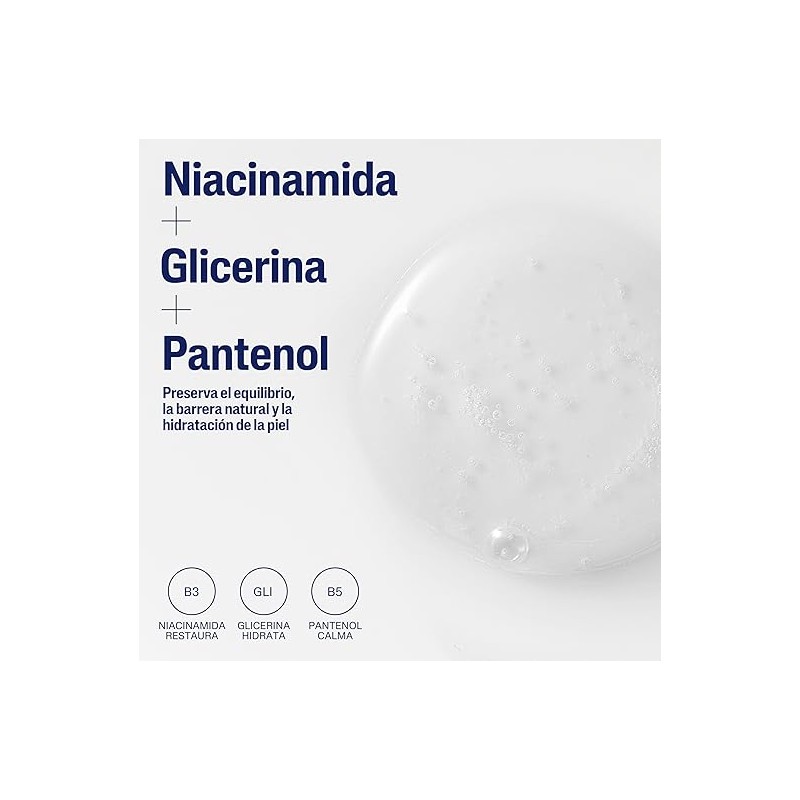 ✔️ Con glicerina, niacinamida y pantenol.