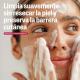 Masajea suavemente sobre el rostro evitando el área de los ojos.