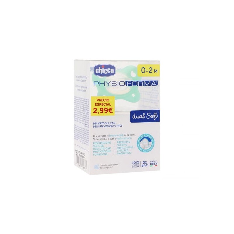 El Chupete Silicona Chicco PhysioForma Dual Soft 0-2 meses es un chupete ultra suave y flexible, diseñado especialmente para los recién nacidos. Favorece el desarrollo oral adecuado, respetando la forma natural del paladar y facilitando la respiración. Su material de silicona extra suave y su diseño ergonómico garantizan una experiencia delicada y confortable para el bebé.