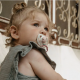 - Inspeccionar cuidadosa y periódicamente el chupete para detectar posibles daños, especialmente cuando el niño tiene dientes. Tirar del chupete en todas direcciones y desechar el chupete a los primeros síntomas de deterioro o fragilidad.