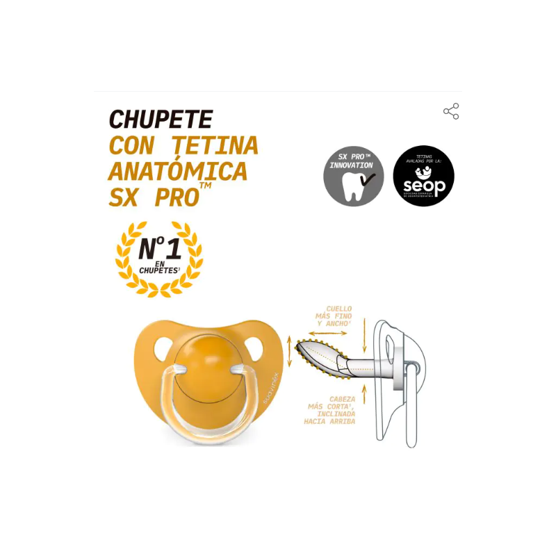 - No exponer el chupete a la luz solar directa o a una fuente de calor, ni en contacto con un desinfectante durante más tiempo del recomendado por el fabricante, en su caso, puesto que esto podría dañar la tetina.