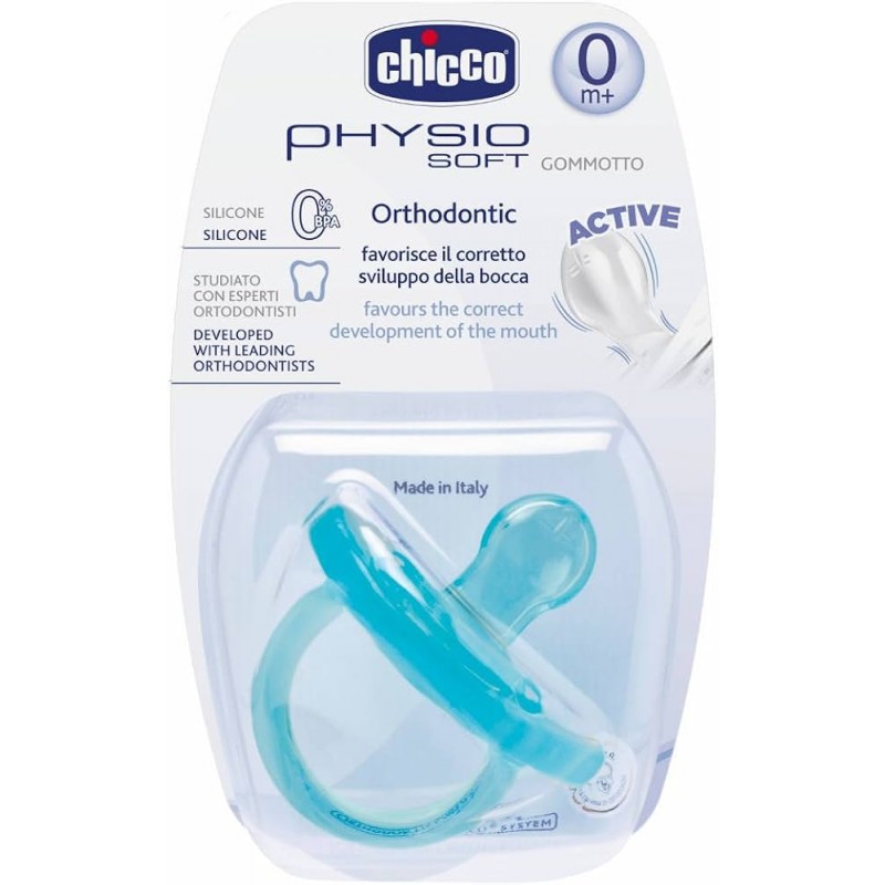 CHUPETE CHICCO PHYSIO SOFT ANATÓMICO 0M+ AZUL es un chupete de silicona suave y anatómico diseñado para recién nacidos, que favorece el desarrollo oral adecuado y proporciona una succión natural y cómoda para el bebé desde sus primeros días.