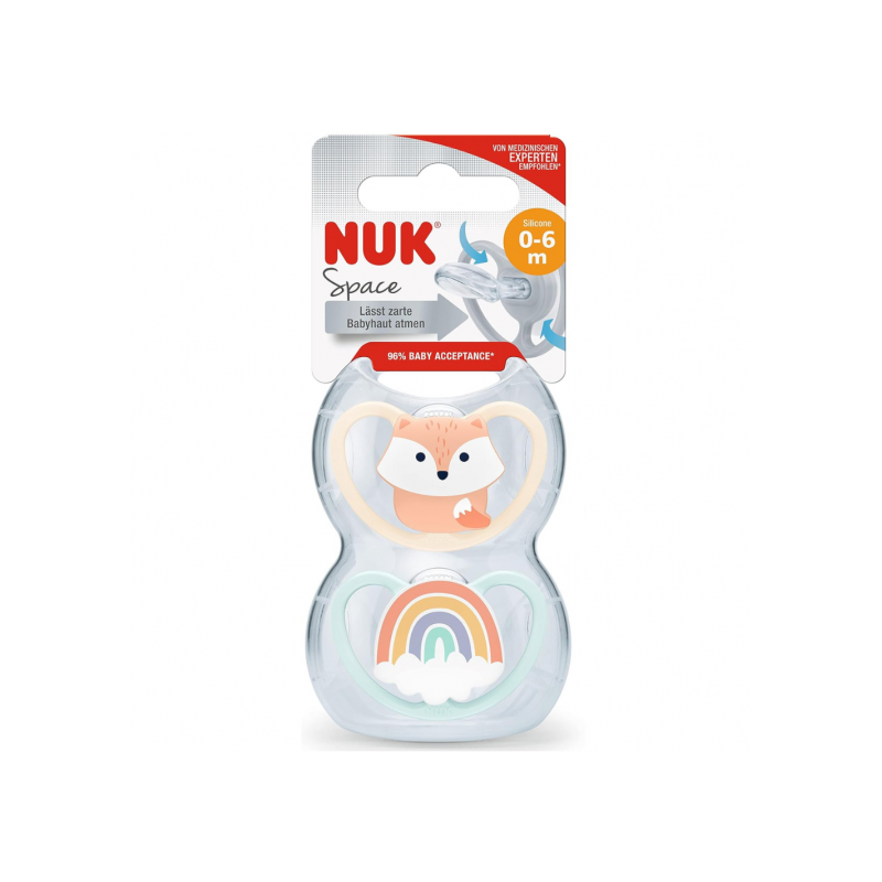 CHUPETE SILICONA NUK SPACE 0 - 6 MESES 2 UNIDADES