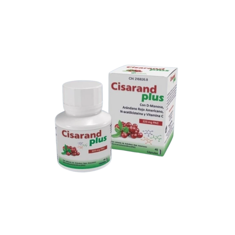 Cisarand Plus es una fórmula avanzada que combina ingredientes naturales con propiedades beneficiosas para la salud urinaria. Su fórmula incluye arándano rojo americano (Vaccinium macrocarpon), rico en proantocianidinas (PACs), que ayudan a evitar la adherencia de bacterias a la pared de la vejiga, reduciendo el riesgo de infecciones urinarias.