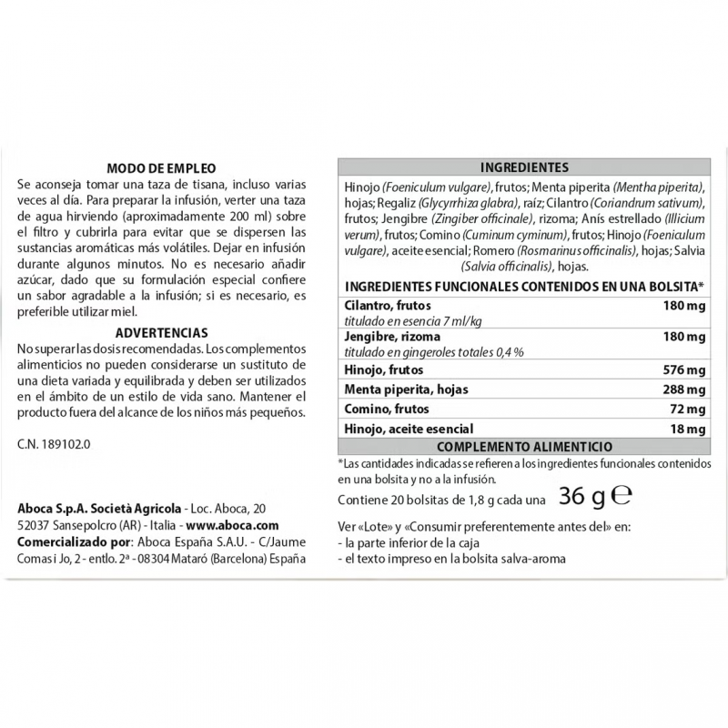 Más informaciónComplemento alimenticio a ase de cilantro, jengibre, menta, comino e hinojo, que puede contribuir a reducir la sensación de hinchazón y tensión abdominal.