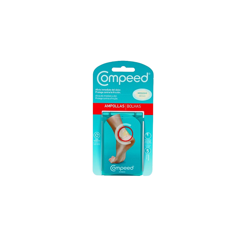 - Bordes ultra-adhesivos y cónicos para que Compeed sea flexible adaptándose al movimiento y no se despegue. El apósito permanece en su sitio protegiendo la ampolla. La adherencia puede variar dependiendo del caso.