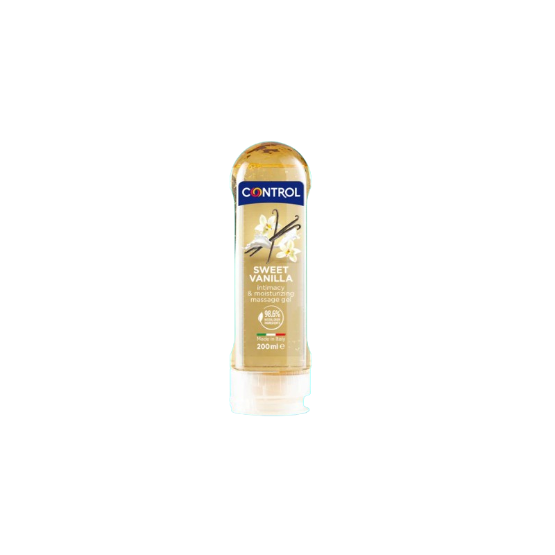 Control Vainilla of Madagascar 2 in 1 Massage & Gel 200 ml es un gel hidratante con aroma exótico a vainilla que combina el placer de un masaje sensorial con la suavidad de un lubricante íntimo. Ideal para compartir momentos de intimidad y conexión en pareja.