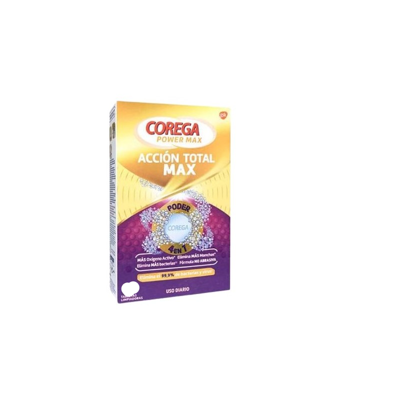 Pack Corega Power Max que incluye el Corega Powe Max adhesivo sellado sin sabor 70g + 6 tabletas limpiadoras con oxígeno gratis de regalo.