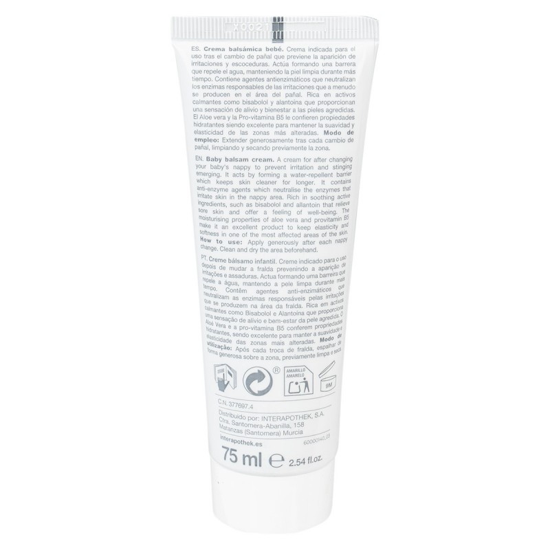 Leer másInterapothek Crema Bálsámica Bebé 75 ml es una crema específica para el cuidado diario de la zona del pañal. Su fórmula suave con pro-vitmina B5 y aloe vera crea una barrera protectora que previene la irritación y favorece la regeneración de la piel. Además es rica en activos calmantes como bisabolol y alantoína, contribuyendo a reparar y regenerar la zona pañal y favoreciendo el bienestar de las piedes agredidas y dañadas.