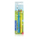 El pack duplo incluye 2 cepillos, ideal para tener siempre un recambio disponible o para alternar su uso, ayudando a mantener una correcta rutina de higiene bucal desde edades tempranas.