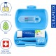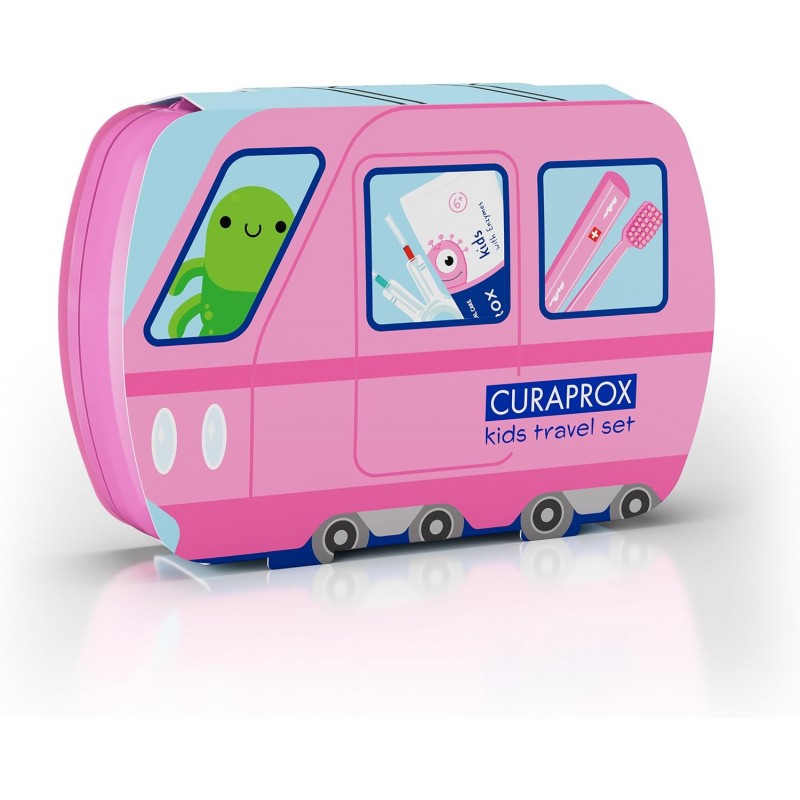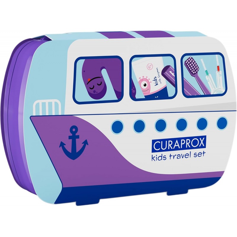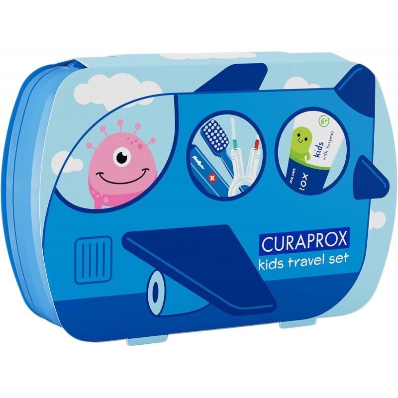 El Curaprox Kit Dental Infantil 4-12 años es un estuche de viaje que incluye todo lo necesario para una higiene bucal completa: cepillo, pasta dental e interdental.