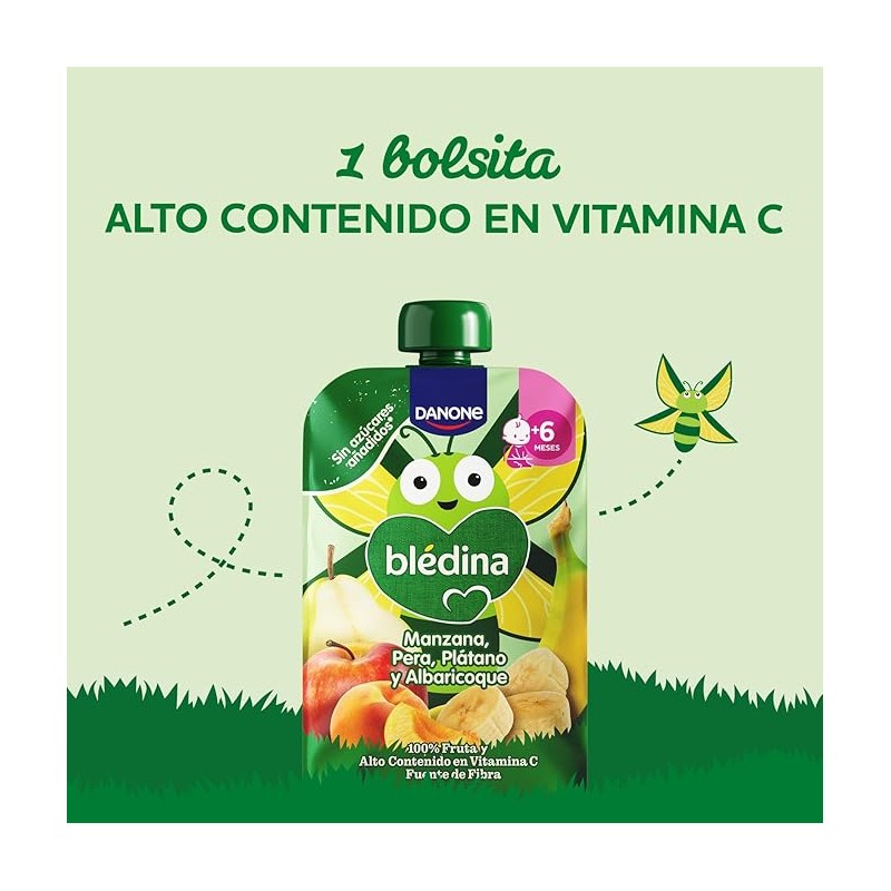 El Danone Blédina Pouch de Manzana, Pera, Plátano y Albaricoque es una opción deliciosa y equilibrada para introducir fruta en la alimentación diaria de los más pequeños mayores de 6 meses. Elaborado con 100% fruta, sin añadidos innecesarios, conserva todo el sabor y los nutrientes naturales.