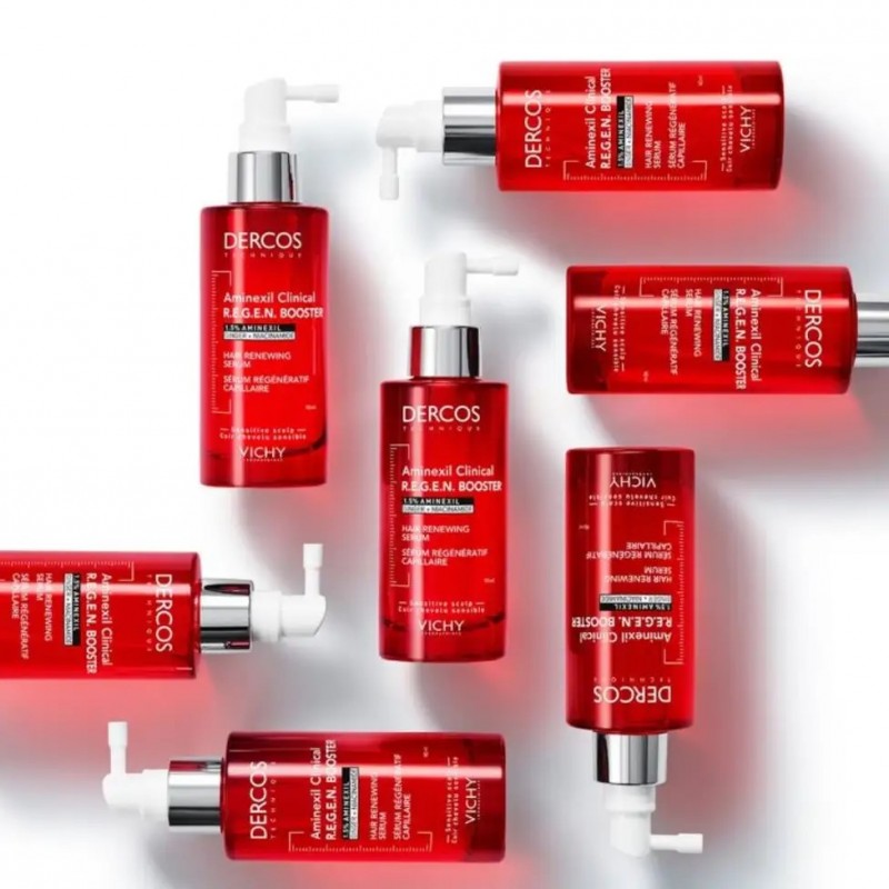 Dercos Sérum Regenerador Capilar de 90 ml está formulado para actuar sobre el cuero cabelludo, estimulando los folículos capilares y fortaleciendo el cabello desde la raíz. Su fórmula concentrada ayuda a reducir la caída del cabello y promueve un crecimiento más fuerte y saludable, mejorando la densidad y la vitalidad del cabello. Ideal para cabellos debilitados o con tendencia a la caída, se absorbe rápidamente sin dejar sensación grasa, facilitando su uso diario como parte de la rutina capilar.